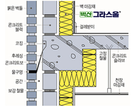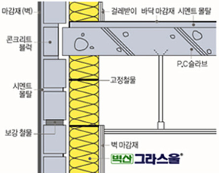 - 미네랄울은 50㎏/㎥, 25mm 이상의 것을 쓴다.